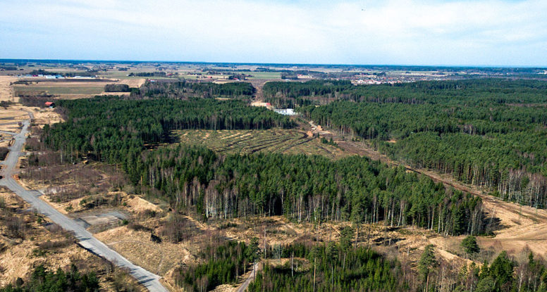 Det har hänt en hel del sedan vi i början av februari var uppe och flög senast. Nu när vi avverkat skog är förändringen i landskapet tydlig, vilket gör det möjligt att se med blotta ögat vart vi tänker bygga det nya reningsverket. Nu rensar vi upp på platsen, tar hand om virket, och gör oss redo för att under maj månad börja stubbfräsa.