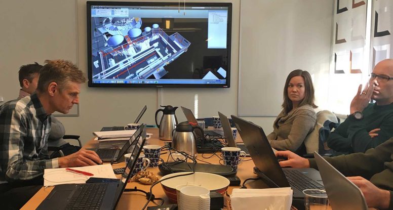 Vid dagens projekteringsmöte gjordes en djupanalys kring placeringen av gasrum, ventilationsutrymme och värmecentral. Utrustning för avvattning samt layoutförslag för labb och kontrollrum diskuterades. 3D-modellen genomlystes för placering av maskinutrustning i verket.