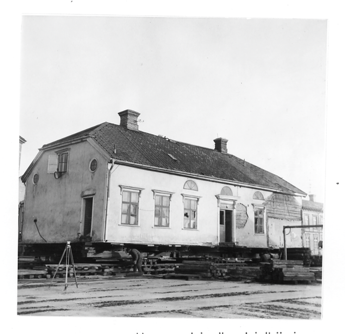 The construction of the first water tower and its water pipes in the early 20th century relied on a lot of people and many spades and shovels. We can catch a glimpse of the water tower and water plant under construction. Right beside the water tower, a fire department was etablished. The fire department building later became part of the Mission Covenant Church of Sweden.