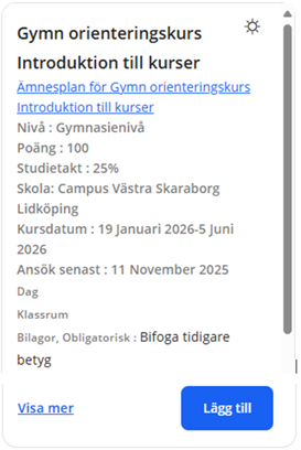 I ansökan heter kursen Gymn orienteringskurs Introduktion till kurser.