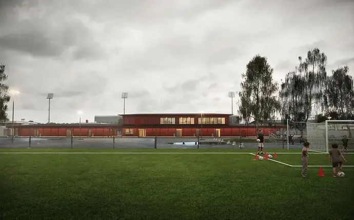 Den nya byggnaden kommer att rymma åtta omklädningsrum, toaletter, förråd, tvättstuga, samlingslokal, kiosk och ytterligare förrådsutrymmen.