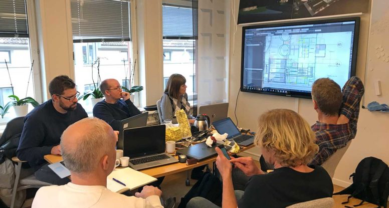 Vi jobbar också med att se över hela byggnaden och processerna för det nya reningsverket. Vid mötet på bilden tittade vi bl.a. på möjligheter att se över byggnadens layout, hur installationer kan optimeras och placeras med mera.