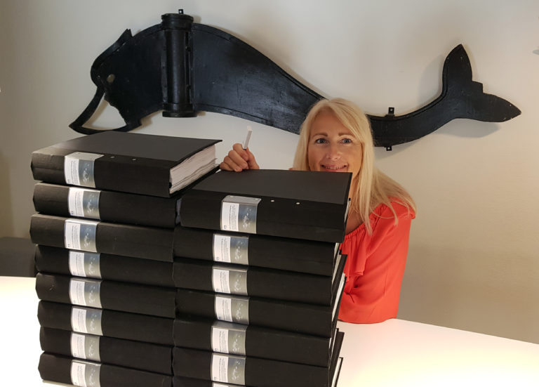 På bilden ser ni VA-chefen Pernilla Bratt framför de 15 kopior av tillståndsansökans som nu är inlämnade till Mark och Miljödomstolen, den uppmärksamme ser även ett litet usb-minnet, med allt samlat digitalt, som vi också skickade med. Nu inväntar vi med spänning på nästa fas.