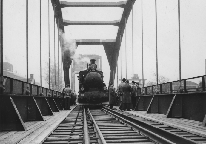 En ny järnvägsbro är på plats. Den 27 februari 1953 kunde åter tågtrafiken rulla över Lidan. En öppningsbar klaffbro tillverkad hos Stahlbahn A G Reinhausen i Tyskland hade ersatt den gamla bron som vid en dramatisk islossning några år tidigare ryckts loss och förts till sjöss av isen. Håkantorpsbanan fick då en provisorisk station, Lidköping Västra, trafiken mellan den och Lidköping Östra upprätthölls av landsvägsbussar. Den nya bron skulle bli normalspårig till skillnad från den gamla som var smalspårig.