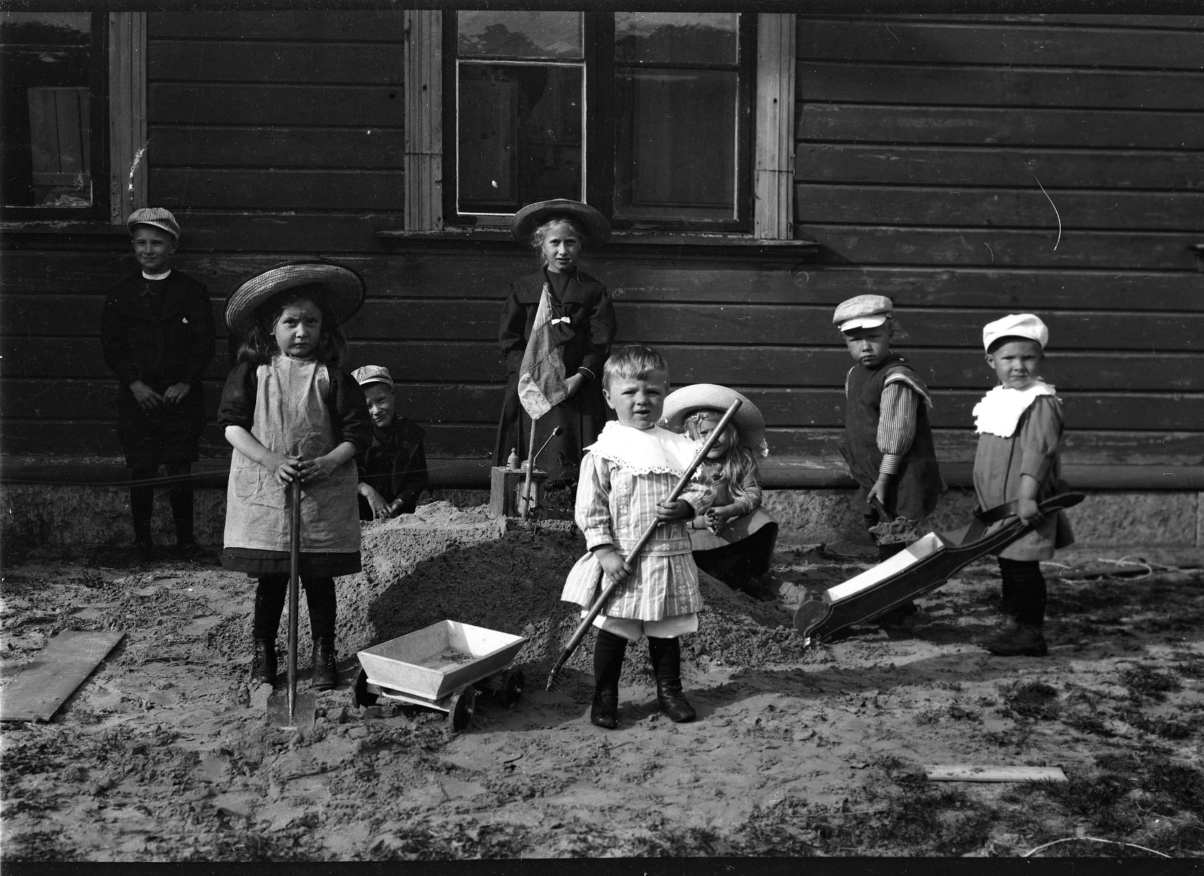 ”The children at the sandpile, 29th of May in 1910”. Mary Andersson Molander lets few words describe the focus of her photo. We will not know if the children had played and later changed to clean clothes, or if they only begun to play when the photo had been taken. Mary journaled for many years, with more descriptive thoughts and observations than the one above. Her journals are now in the collection of the Museum of Lake Vänern. You get a chance to get to know Mary better in the exhibition Berättelser från Lidköping (Stories from Lidköping).